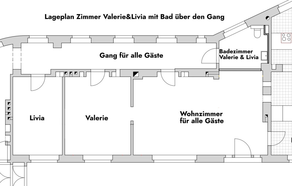 THE WHOLE HOUSE are 4 double rooms with bathroom and 2 double rooms with ons common big bathroom on the corridor. The living room and the kitchen are also included. The veranda and the garden can be used as well.